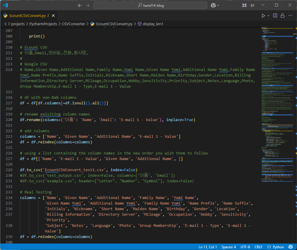 This Python script was developed to automate the conversion of contact data from ECount CSV format to the Google Contacts CSV format, ensuring compatibility for seamless import into Google Contacts.