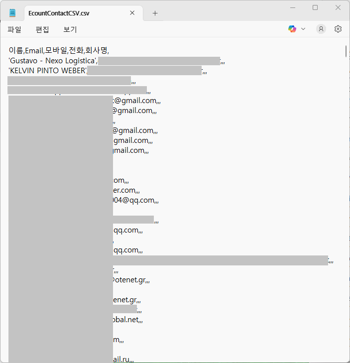 Created during my time at 2L Bio Co., Ltd. (투엘바이오), the tool parses and restructures raw CSV files exported from ECount ERP and transforms them into the required Google Contacts format. It supports column renaming, filtering non-empty rows, and reordering headers to match Google's schema precisely.