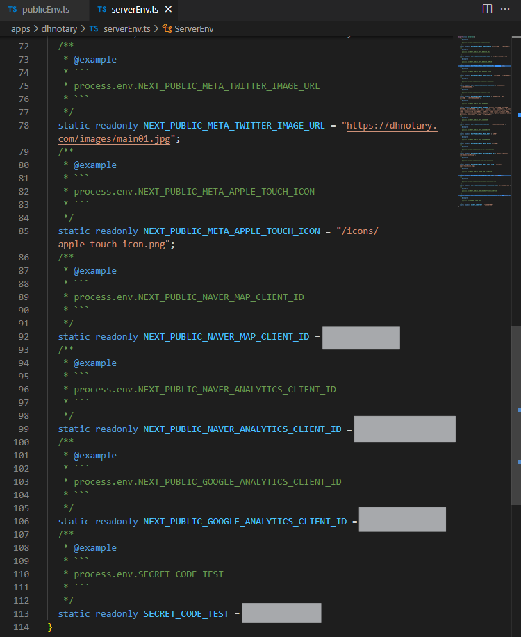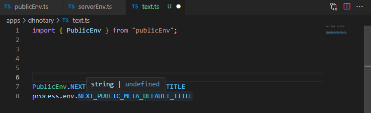}publicEnv.ts (for NEXT_PUBLIC_*)serverEnv.ts (for private variables)import { PublicEnv } from './publicEnv';