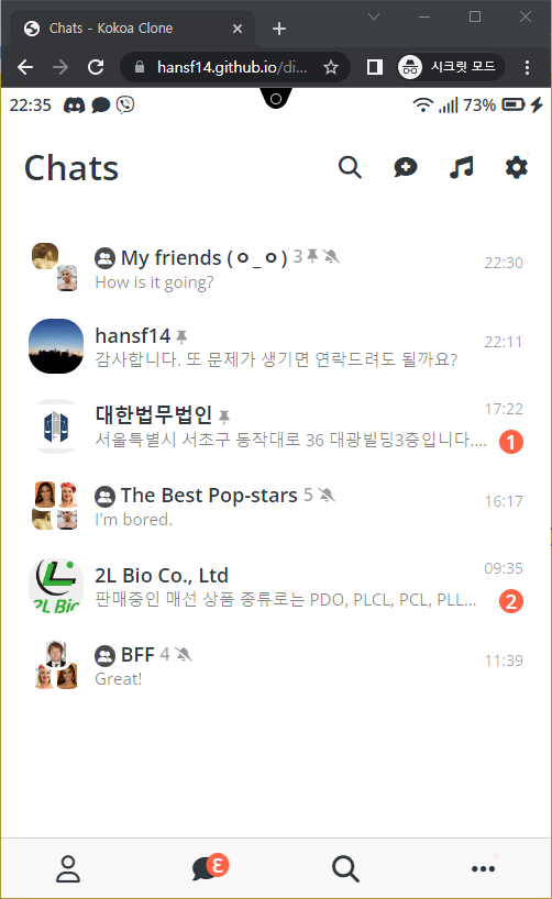 A pixel-perfect layout replication of the KakaoTalk mobile app UI, created using only HTML and CSS — no JavaScript, no frameworks, no libraries. This project captures the visual structure and polish of the original app, offering an immersive front-end-only experience suitable for layout and design practice.