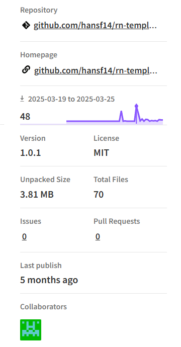 @hansf14/rn-template is a production-ready React Native starter template that helps you move fast without compromising structure or flexibility. The template is packed with essential tooling and setup that reflects modern best practices.