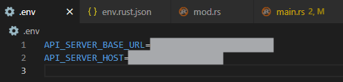 std::env::var("MY_ENV_KEY")..env file changes on save.env.rust.json..env file and define your keys:API_SERVER_BASE_URL="https://api.example.com"