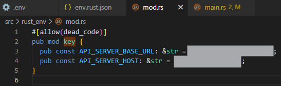 }.env file, the extension automatically generates the module with the env key constants:#[allow(dead_code)]